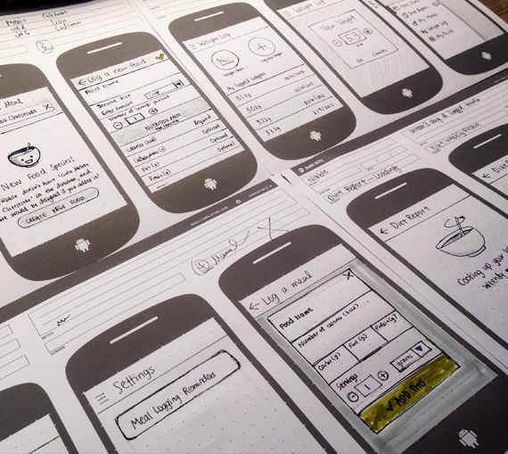 Using pen (my favourite is the Pilot Frixion) and paper, I sketch paper mockups of the layout and interactions.
